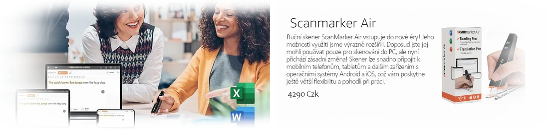 Zapomeňte na klasický způsob skenování. Ruční skeneryScanMarker jsou jediné v České republice, které skenují text a přenášejí skenovaný text jako textový soubor. Jednoduše pokud skenuji tištěný text (smlouvu, fakturu, knihu, dokument ) text přenášený při skenování se v textových programech znázorňuje ne jako forma PDF, ale jako psaný text a rovnou s tímto naskenovaným textem mohu pracovat.