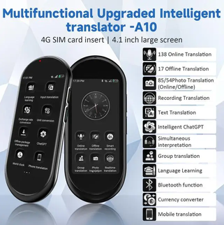 Multifunkční jazykový překladač Anobic VTA10: Náš jazykový překladač podporuje okamžitý obousměrný překlad, včetně 138 online jazyků, 17 offline jazyků a 85/45 jazykových překladů obrázků. Zařízení pro hlasový překlad, do kterého lze vložit SIM kartu 4G: Tento jazykový překladač podporuje více způsobů přístupu k internetu, podporuje WIFI/hotspot a lze do něj vložit i SIM kartu (není součástí balení)