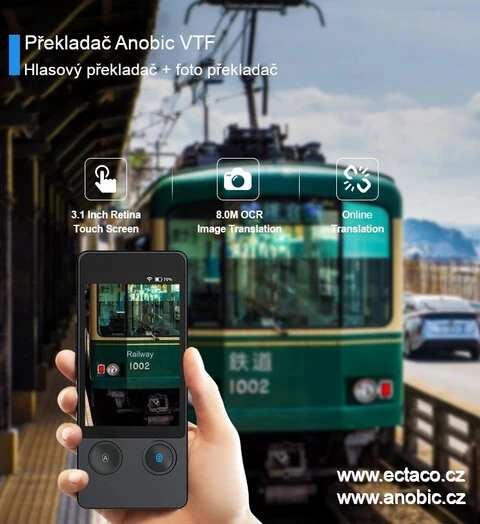 Multifunkční hlasový překladač ŘEČI i FOTO Anobic VTF s WiFi / 4G je vybaven zadním fotoaparátem a dotykovým displejem 3.1 " Ten umožňuje snadnější a přirozenější tlumočení rozhovoru mezi dvěma nebo více účastníky ve dvou různých jazycích. Frázi v jednom jazyce stačí namluvit do mikrofonu zařízení.